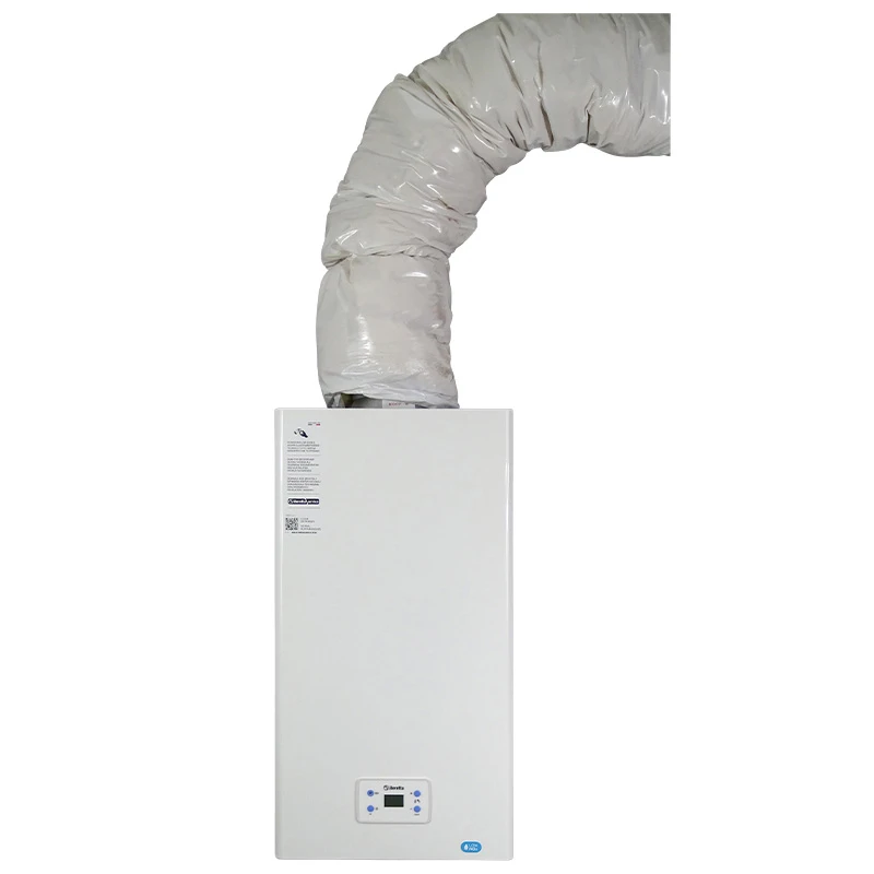 Settet inneholder fleksibel isolert avtrekkskanal, overgang og ventilkappe med stuss. Ventilkappen på yttervegg er utført i metall, men kan males i samme farge som hytta. Avgasspakken passer til en 11 liters vannvarmer. Den kan også tilpasses 14 liters vannvarmer ved hjelp av en overgang.