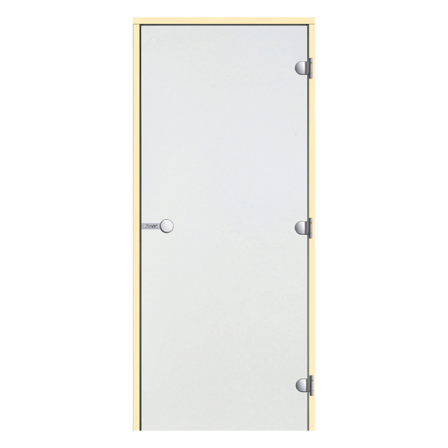Glasset i dørene er 8 mm tykt. Med en glassdør blir badstuen både lysere og mer åpen. Dører med herdet glass er gjennomsiktige, og dører med frostet glass, hindrer mot innsyn. Leveres monteringsklar med karm, silikontetting til karmen og håndtak. Dørene leveres i standardstørrelse med utvendige mål på karm 690 x 1890 mm. Karmdybde: 92 mm. Andre mål skaffes på bestilling.
