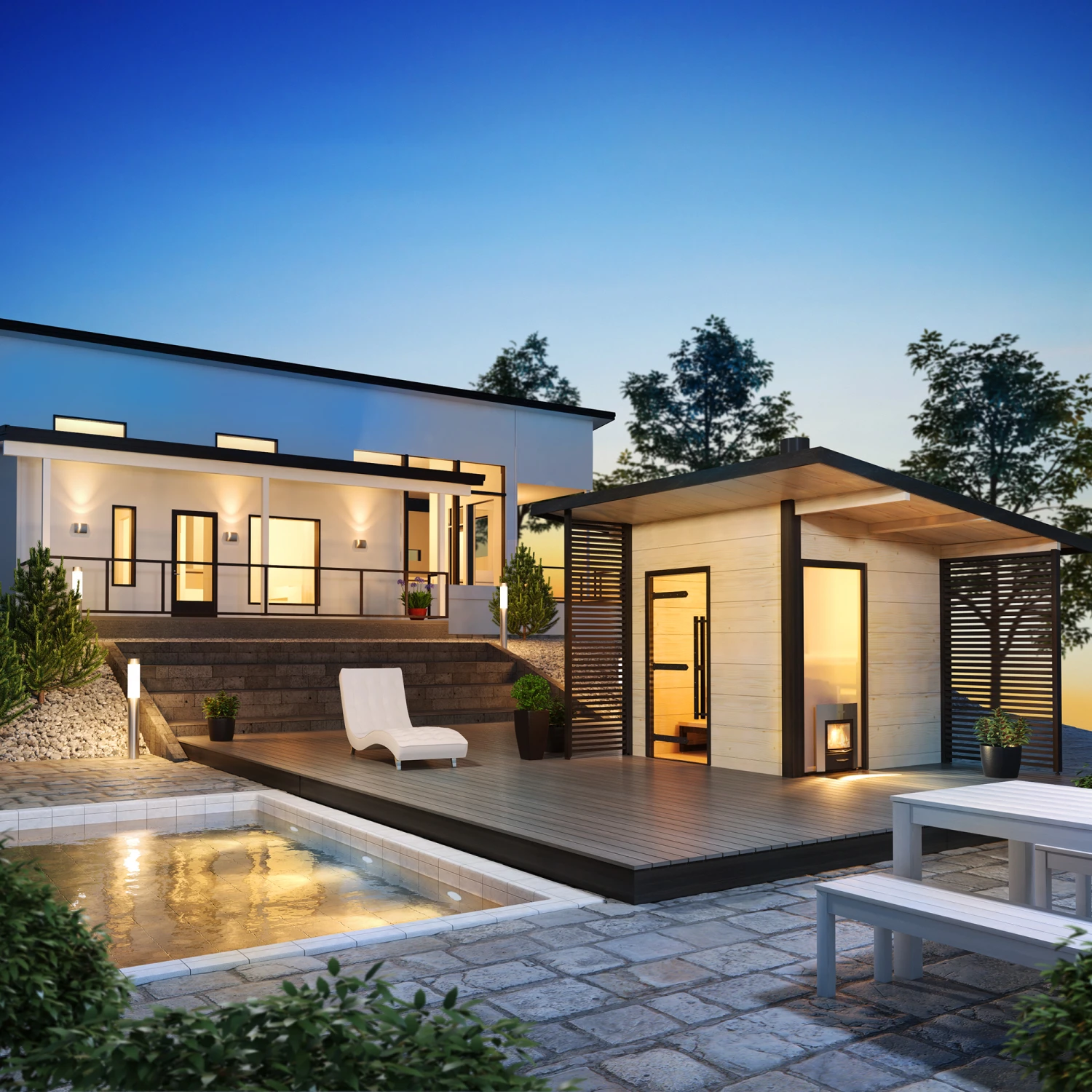 Med designbadstuen Solide skaper du en deilig hytteatmosfære i din hage, selv om du bor sentralt. Kombiner et miljø med grill, badstue og boblebad på din egen tomt!
