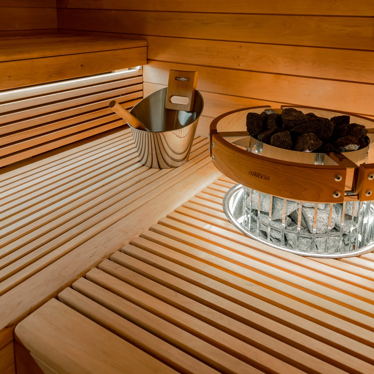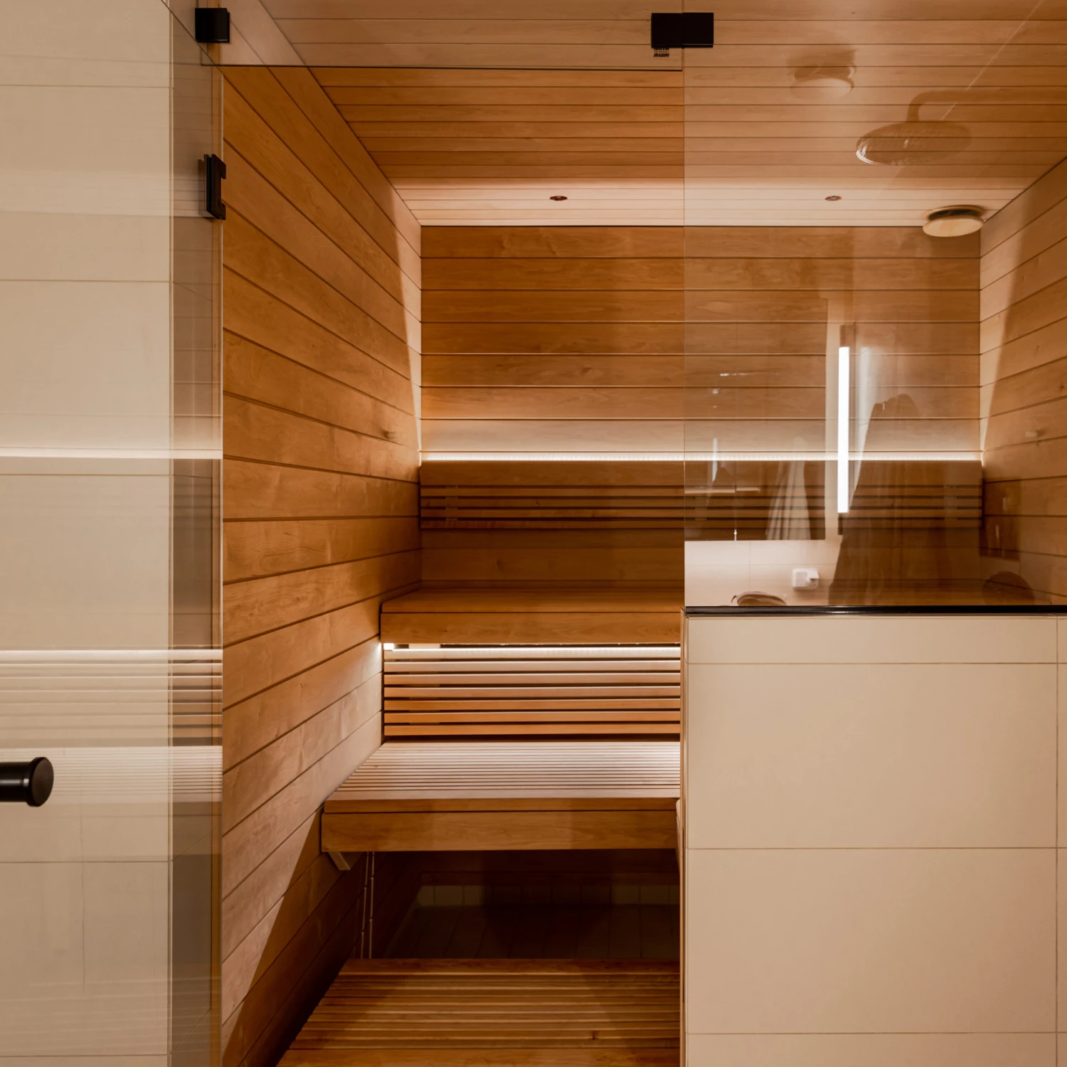 Vi skreddersyr dimensjonene, formene og panelene til benkene for å passe hver kundes spesifikke behov. Badstuovnen, belysningen og interiørdekorasjonen er også designet og gjennomført ned til de minste detaljer for en perfekt løsning basert på dine ønsker.