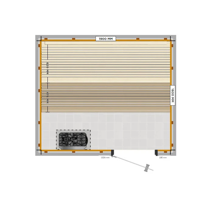 Eksempelbadstuens innhold (1900 x 1600 mm):