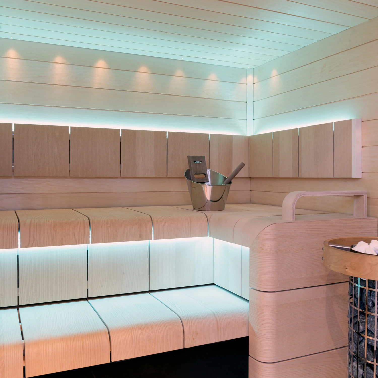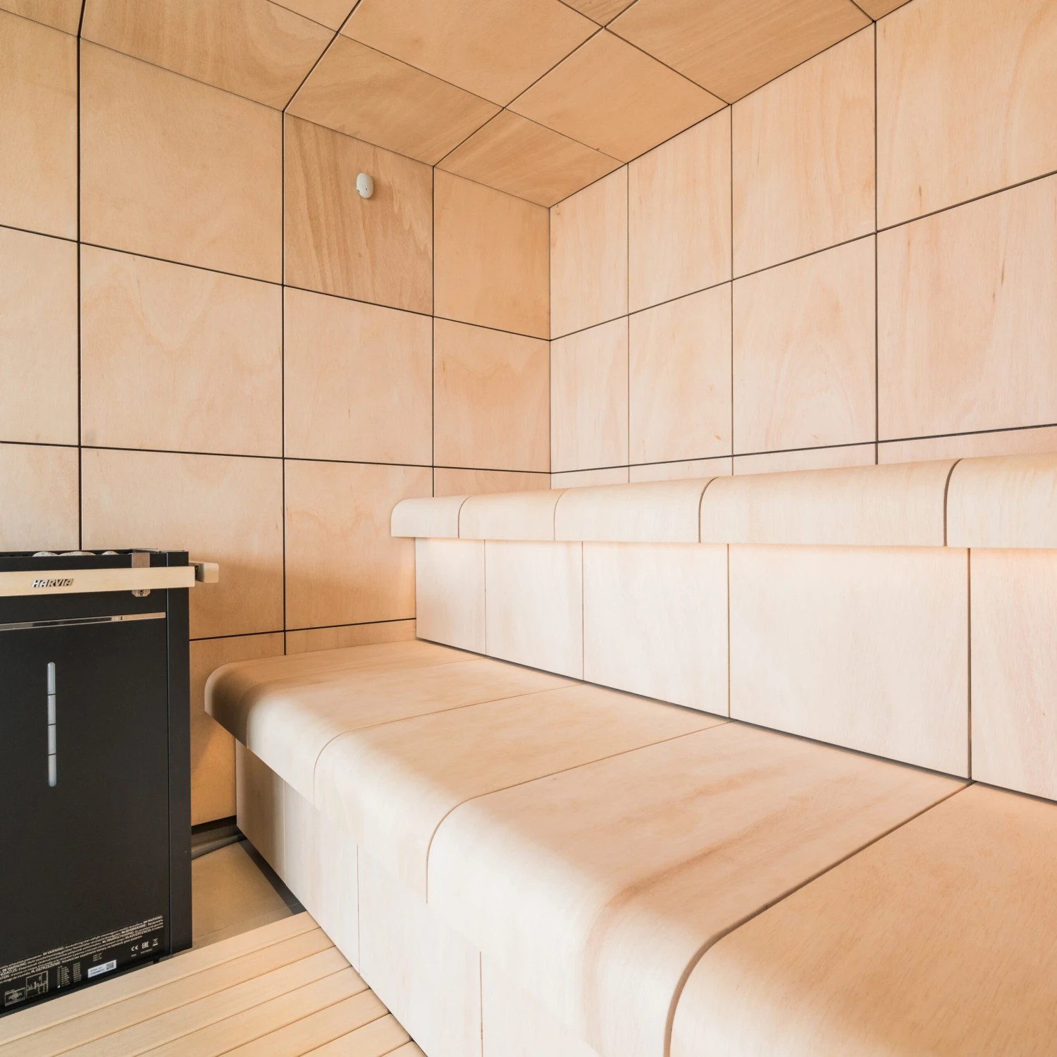 Badstuinnredningsmodellen Harvia Ventura gir noe helt nytt til din badstue! Vi kan hjelpe deg med å designe din badstue og leverer benker og panel på mål.