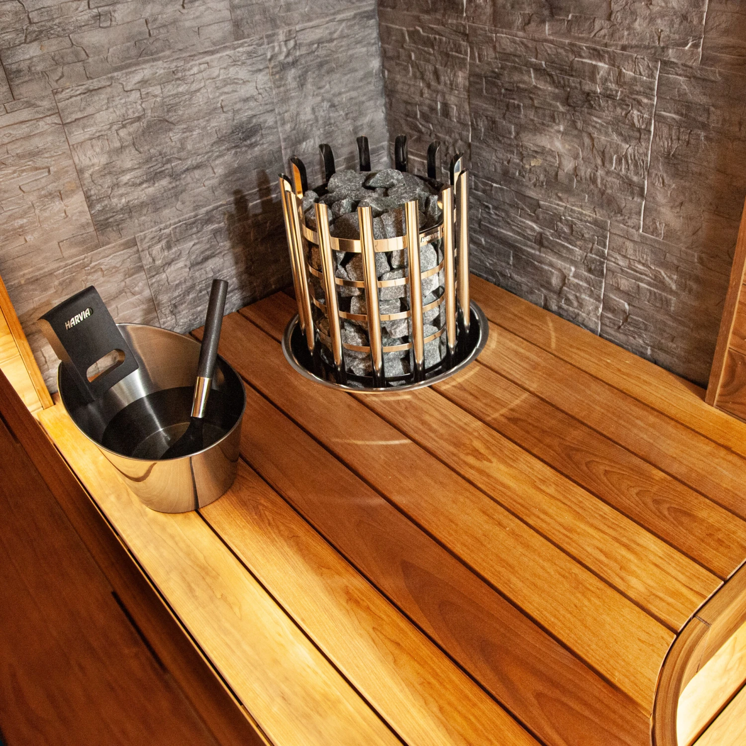 I tillegg til det estetiske, tilbyr Glow-varmeovner også en behagelig badstuopplevelse: den store mengden stein muliggjør myk, behagelig damp. Du kan kontrollere mengden damp og dens varme ved å enten kaste vann direkte på steinsøylen eller på siden.