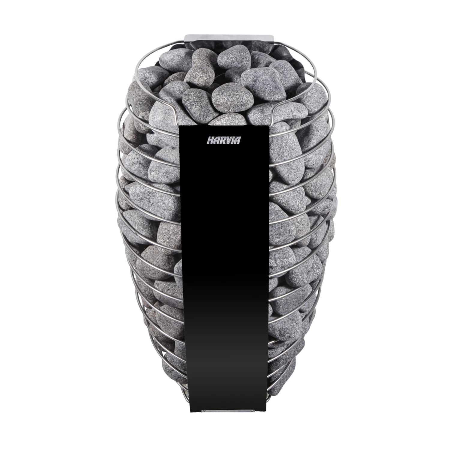 Elektrisk badstuovn med buede former og et design inspirert av naturen. Harvia Spirits design fremhever de runde steinene og skaper en moderne og elegant atmosfære med en mild damp.