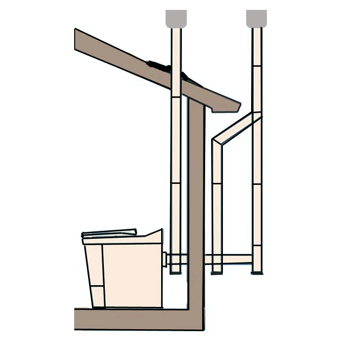 Toalettets avgasser må føres ut i friluft. Det er to hovedtyper installasjon: