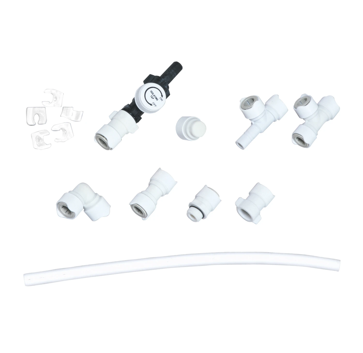 Komplett startpakke fra Whale med hurtigkoblinger og rørdeler for deg som skal legge opp vannsystem på hytta. Med rørdelene kobler du alle delene i vannsystemet sammen: fra vannkilden via vannpumpe, til vannvarmer og videre til for eksempel kjøkken og baderom. Systemet er svært enkelt å montere. Rørene kuttes rett over til riktig lengde med spesialtang eller kniv, og kobles sammen uten bruk av verktøy. Koblingene er tette når de er riktig montert og du får garantert ingen vannlekkasje. Systemet er fleksibelt og du kan bygge det ut etter behov. Whale hurtigkoblinger er solide, robuste og tåler store temperaturforandringer.