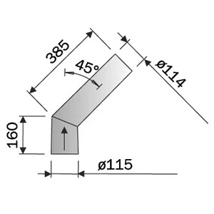 Uisolert monteringsrør. 45 grader. Malt stål.