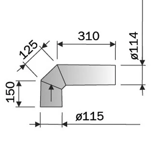 Uisolert monteringsrør. 90 grader. Sortlakkert stål.