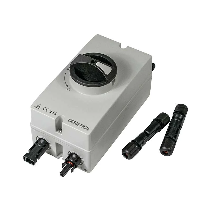 Sikkerhetsbryteren kommer med ferdige påmonterte MC4-kontakter for enkel og effektiv installasjon der det benyttes kabler med MC4-kontakter mellom solcelleregulator eller grid-inverter.