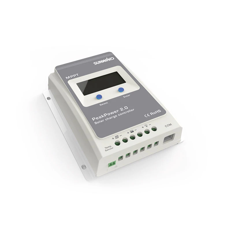 Regulatoren er justerbar for ulike batterityper: AGM, gel, åpne batterier og bly/syre, og har temperaturkompensert ladning. Peak Power kommer med innebygget LCD-display.