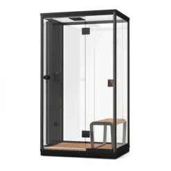 Harvia Nova steamdusj er et dusjkabinett og steamrom i et og samme rom. Harvia Nova har en unik kombinasjon av tre, metall og glass som vil gi deg den følelsen av komfort og avslapning som du fortjener! Harvia Nova steamdusjkabinett er en plug-and-play-løsning med et design som taler for seg selv. Novas tynne rammestruktur med nesten full glassfasade, kombinert med den integrerte steamsøylen, er det garantert å gi et snev av luksus og moderne appell til ethvert bad der den er plassert.