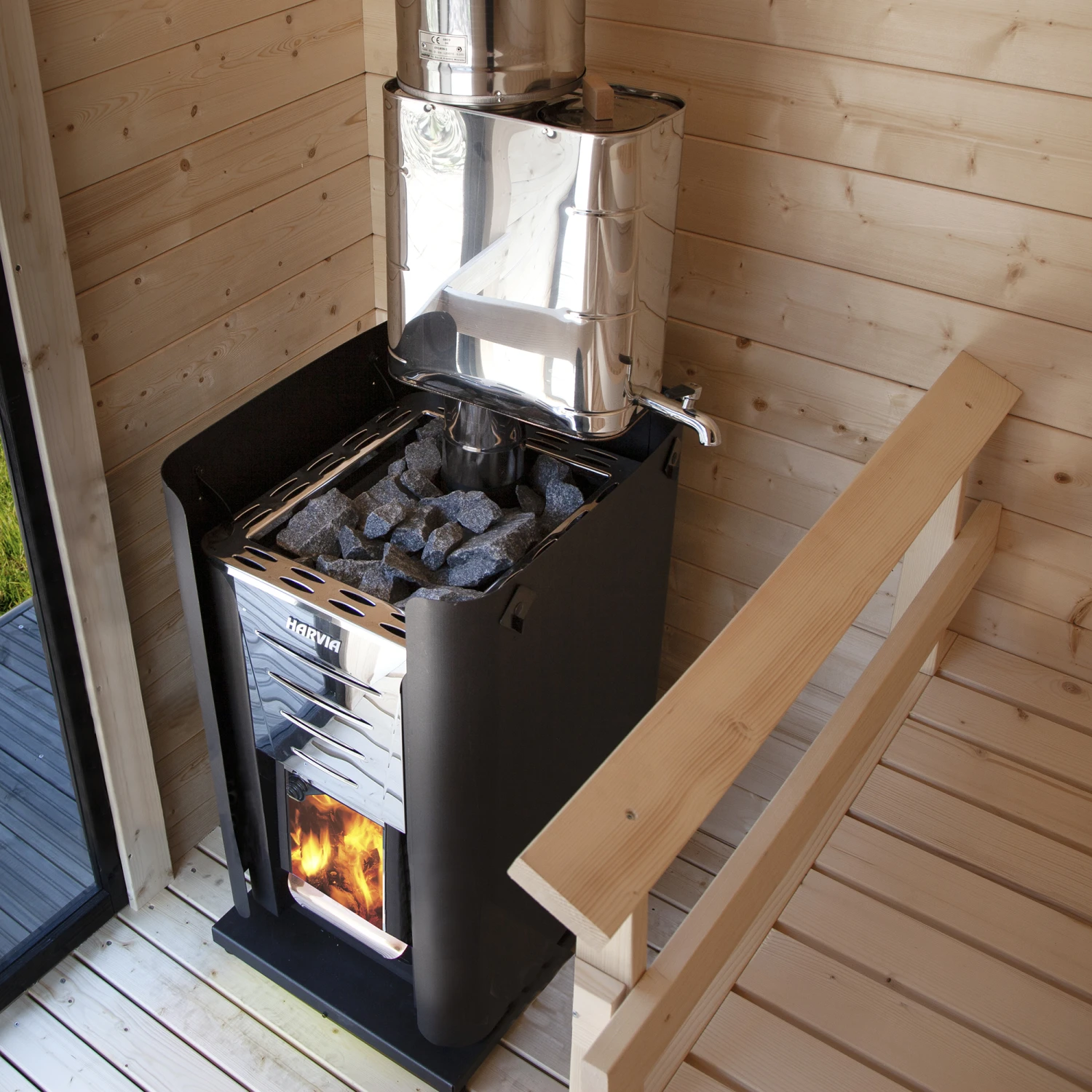 Vannvarmer for badstuovn monteres direkte over den vedfyrte badstuovnen.