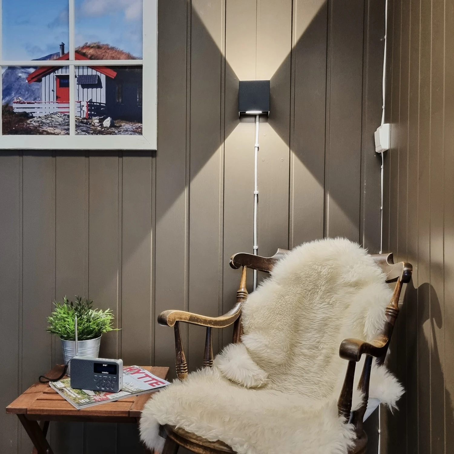 Vegglampe Design Cube Black er en sort vegglampe på 12 volt med et moderne og tidløst uttrykk.