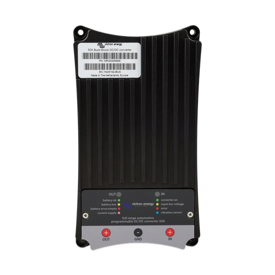 Victron Buck-boost på 50 ampere er en DC-DC omformer som sørger for riktig ladning av batteri i bobilen gjennom dynamo.